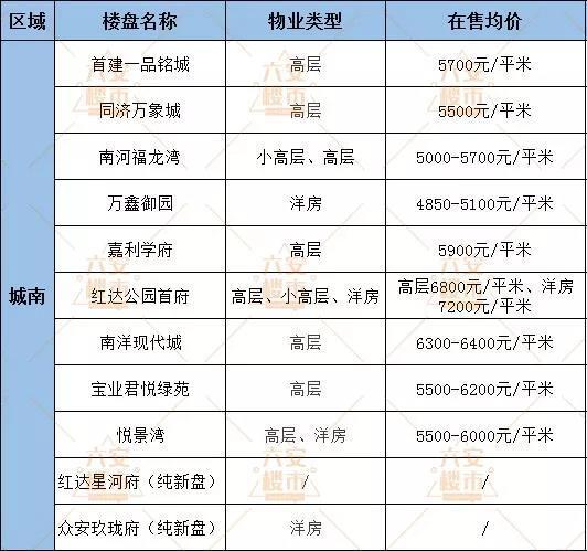 南区在售楼盘较新均价