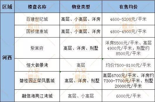 西区在售楼盘较新均价