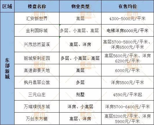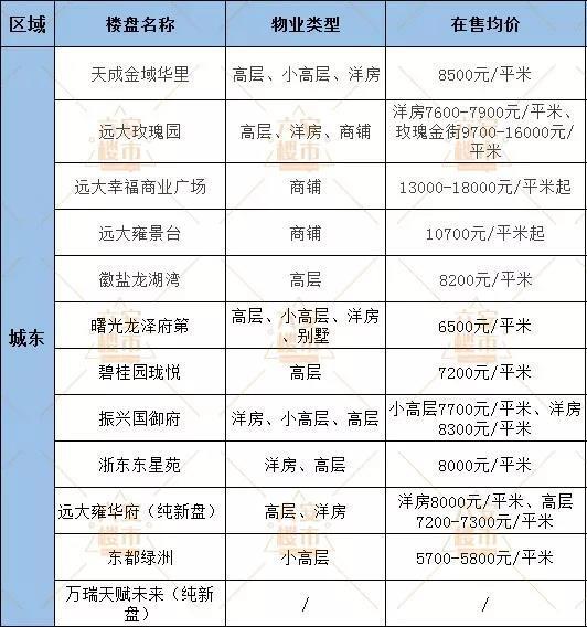 东区在售楼盘较新均价