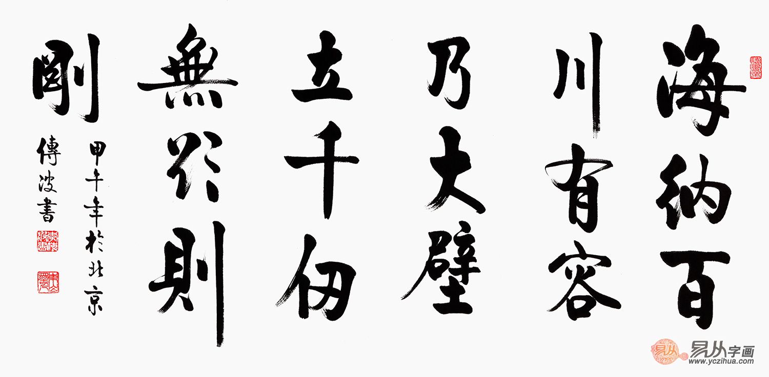 “海纳百川 ,有容乃大;壁立千仞,无欲则刚”是企业领导者应有的胸襟和气度。把李传波老师的这幅名言书法,悬挂在领导办公室非常推荐。