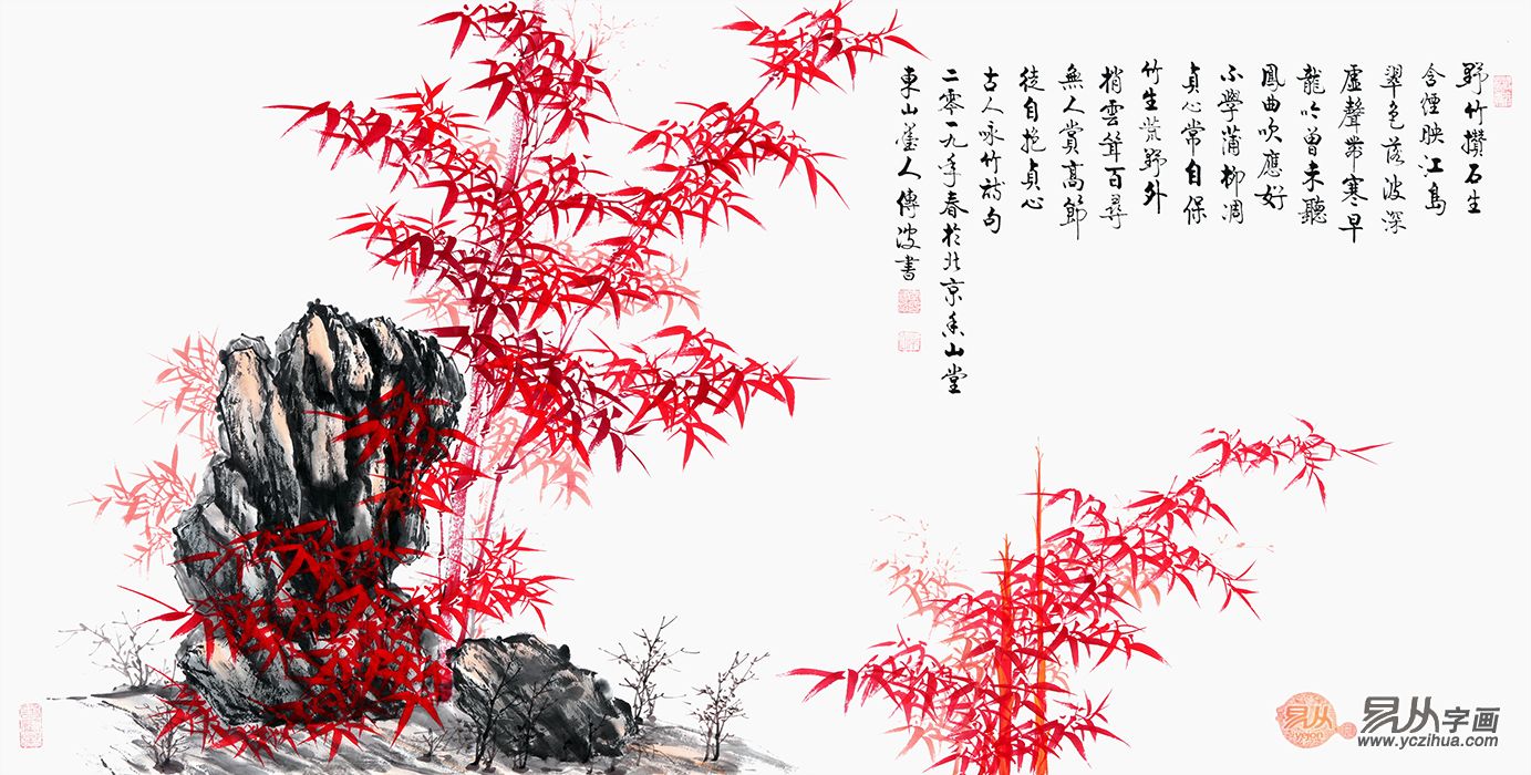 【精品】启功大弟子李传波新品红竹画《咏竹》作品来源:易从网