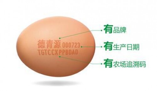 许多消费者认识“德青源”品牌,是从鸡蛋上的“身份喷码”开始的。德青源生产的每一枚鸡蛋蛋壳上都清晰地喷印着“德青源品牌、生产日期、农场追溯码”三个重要信息。据德青源老员工介绍,现在德青源蛋品宣传材料“身份喷码”上印的“000723”字样,就是2000年7月23日排名前列批德青源有身份证明的蛋品出厂的历史见证。