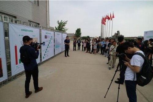 图为德青源市场总监马毅(中)向媒体记者介绍公司发展概况。