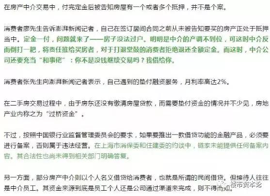 但据多家媒体报道,“链家系”在有金融业务的背景下,存在对买房人实施信息壁垒(如文中“签订居间合同之前从未被告知要买的房产正处于抵押当中”)从而获利的现象。