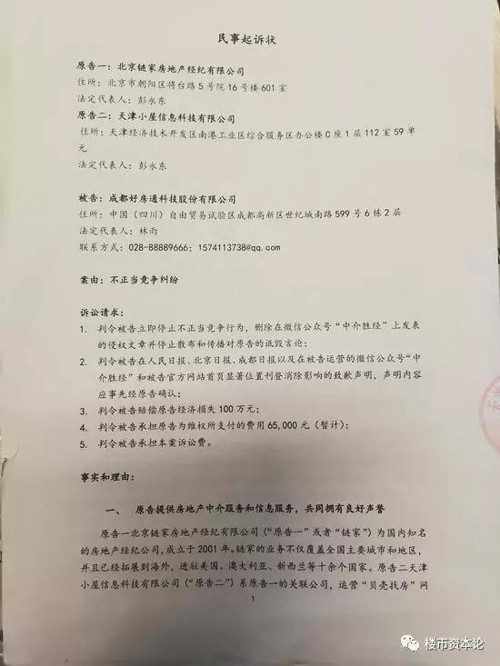 12月23日,贝壳将矛头指向了好房通,以在好房通创始人兼CEO林雨运营的微信公众号“中介胜经”中,有文章对链家和贝壳有不符合事实的指责起诉好房通科技不正当竞争。