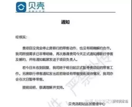 据传就在前不久,朋友圈流传着这样一条消息:贝壳发布了一条强硬的公告,因为绿城找了别家的带客团队,决定停止对绿城的合作,态度非常强硬到甚至有些威胁的味道。