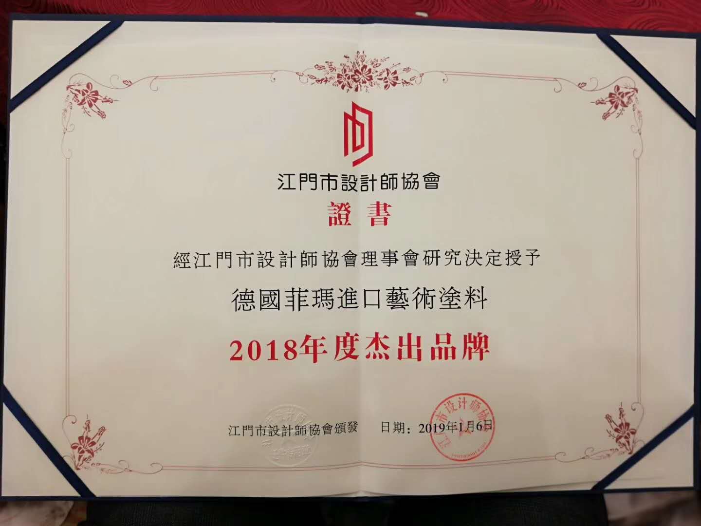 祝贺 广东省江门德国菲玛艺术涂料荣获“2018年度杰出品牌”