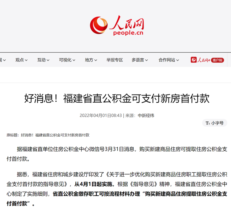 而就在福州放开“限购”的救市余热还未散,福建省再次出台楼市新政:福建省直公积金可支付新房首付款。从4月1日福州实行公积金新政,在福州市行政区域内购买新建商品住房,购房职工及配偶可向省直公积金中心申请提取公积金账户内的住房公积金。
