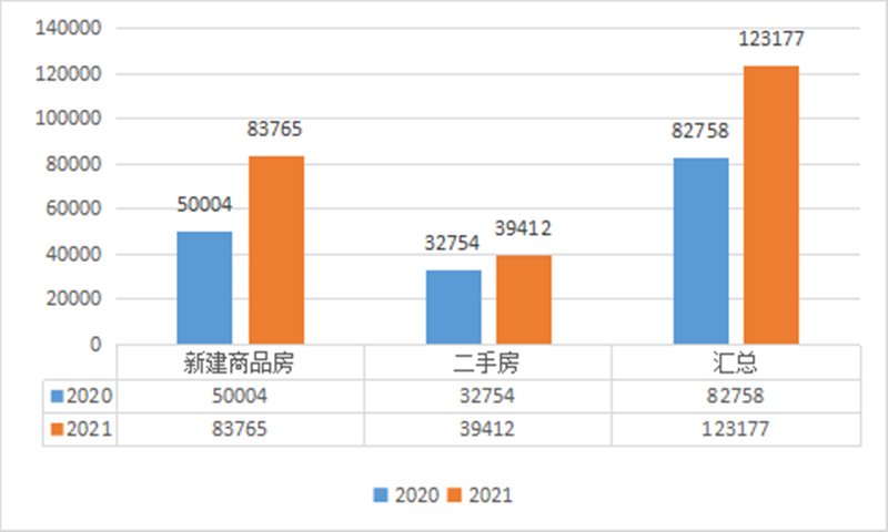 而二手房交易39412万套、300.99万平方米,同比2020年的32754套和251.72万㎡,增幅分别为20.32%和19.57%。