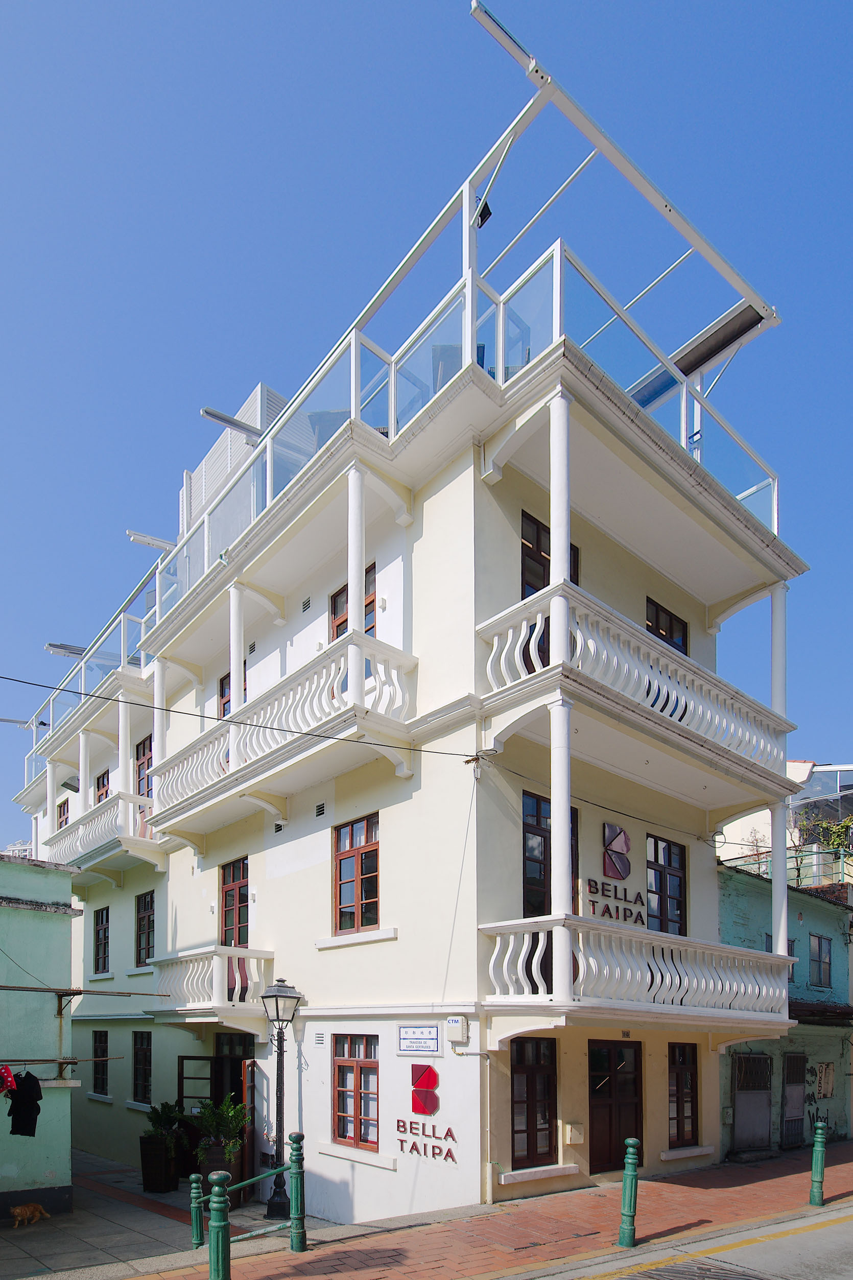 BELLA TAIPA在澳门当地为一相当具有近代殖民风情的意大利料理餐厅,澳门在近代史上曾是葡萄牙的殖民地,建筑表皮在因应历史轨迹略具两地文化的激荡,产生另出一辙的殖民风情。白墙,小木格窗,白栏杆,小阳台,整齐的门面,建筑外貌就如同一个小巧精致的白色珠宝盒般的,令人玩味。