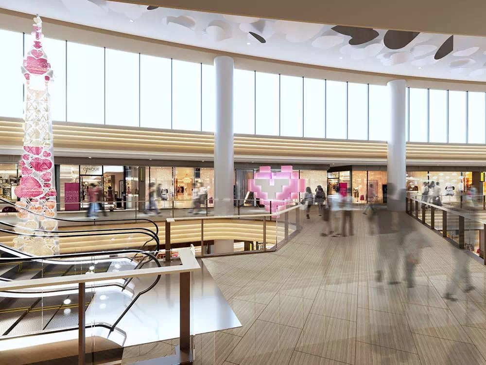 拥有几个中庭空间的购物中心,可以通过不同的 中庭主题场景切换,视觉上保持足够的新鲜感,真正做到一步一景