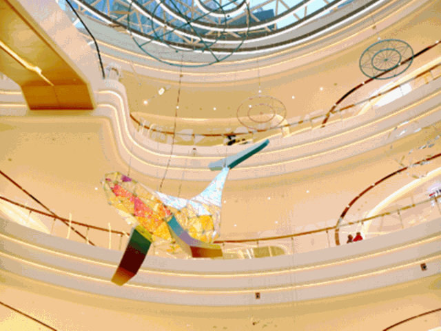 同时,中庭一定要有一个 “重点观赏区”突出视觉重点,产生高度的视觉感官体验,能够立刻吸引到顾客的目光。基于此,其他的美陈小品的摆放要保持整体疏密有度,主次有别,才能达到良好的视觉效果。