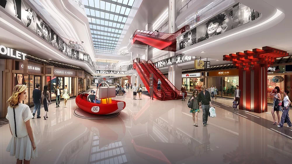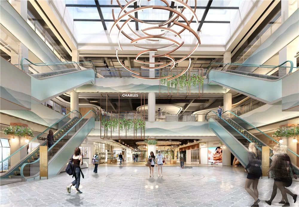 中庭垂直动线在商业空间里至关重要,但往往是人们最容易忽略的部分。垂直动线的强化一方面提升了整体商业氛围,最重要的功能是能够起到引导人流,帮助解决上层客流减少的问题。