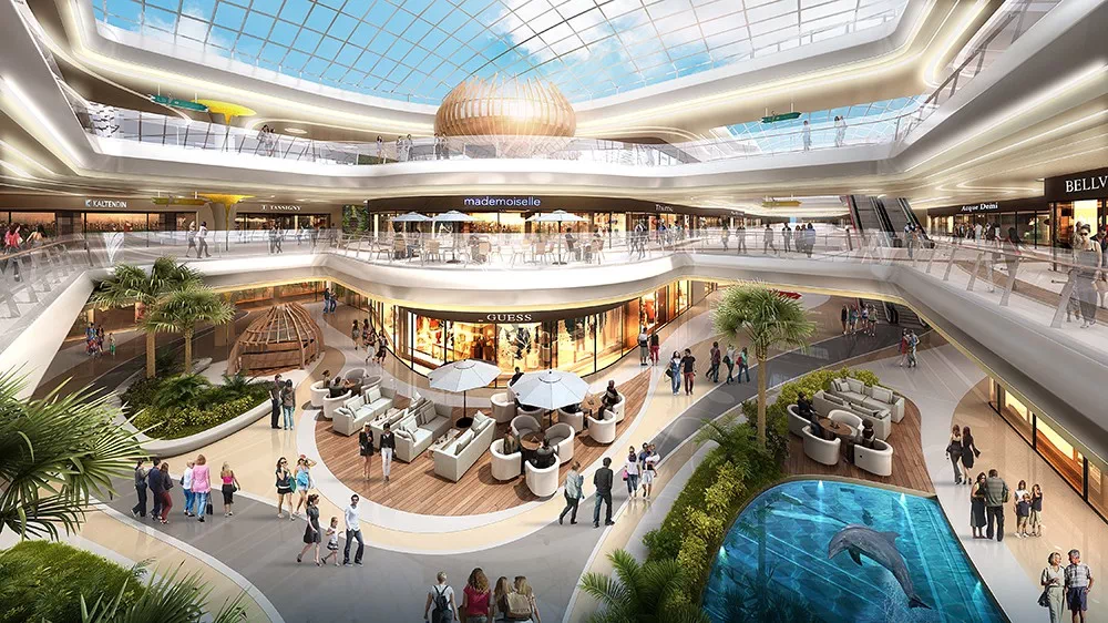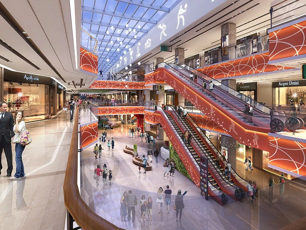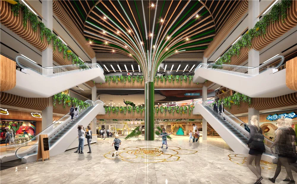 购物中心内部,将 水、木、花三元素引入三大中庭,实现自然与商业的融合。
