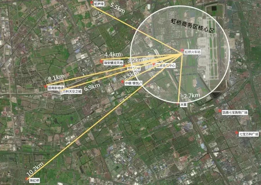 周边还有虹桥时代广场、虹桥天地、虹桥天街、全亚洲规模较大的百老汇(规划中)、约22万方兰韵文化中心(在建中)等等。