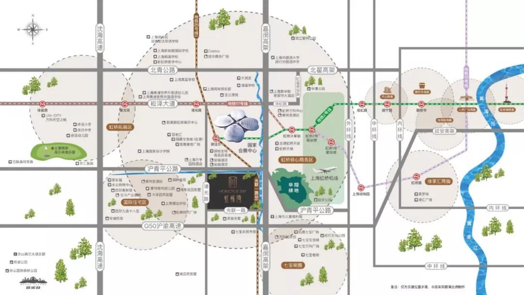 虹悦湾距离轨交2号线徐泾东站2.8公里,规划25号线就在附近,坐享立体交通路网,周边还有沪渝高速、沪青平公路、嘉闵高架等可直达徐家汇、静安寺、人广、外滩五大CBD。