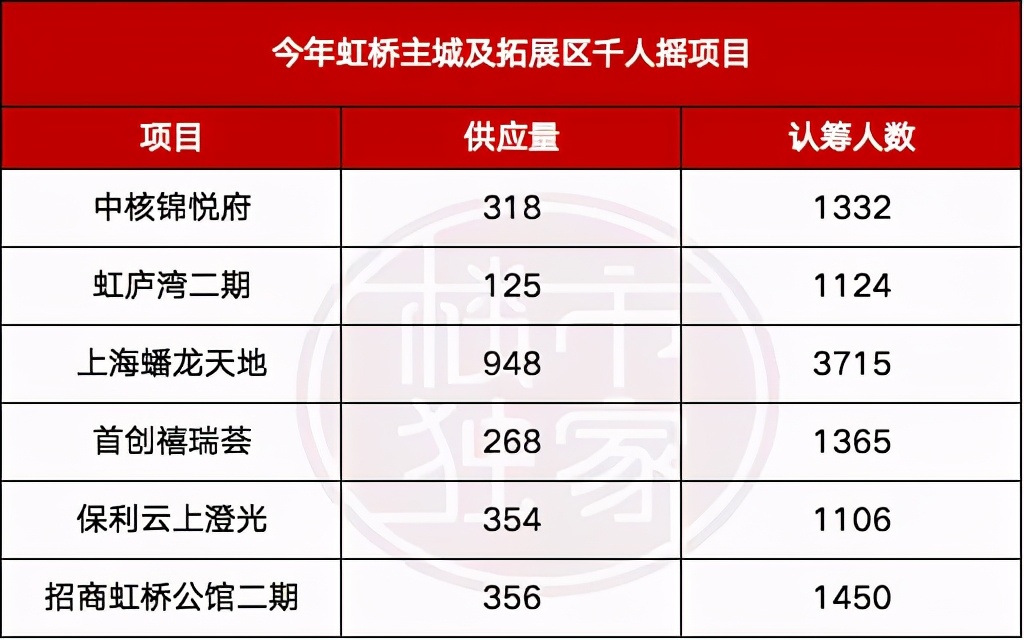 今年大虹桥6个项目认筹人数破千,甚至还有项目破3千!超10000张房票,争夺大虹桥徐泾2369套新房房源!热度甚至超前滩!