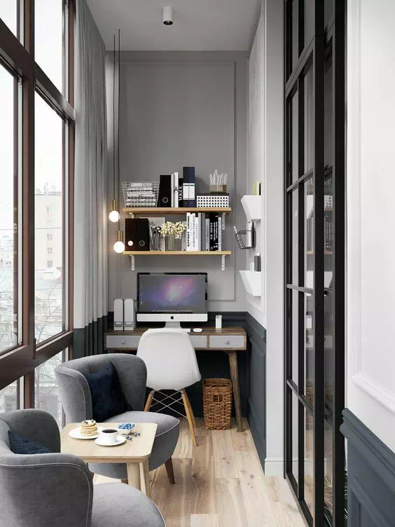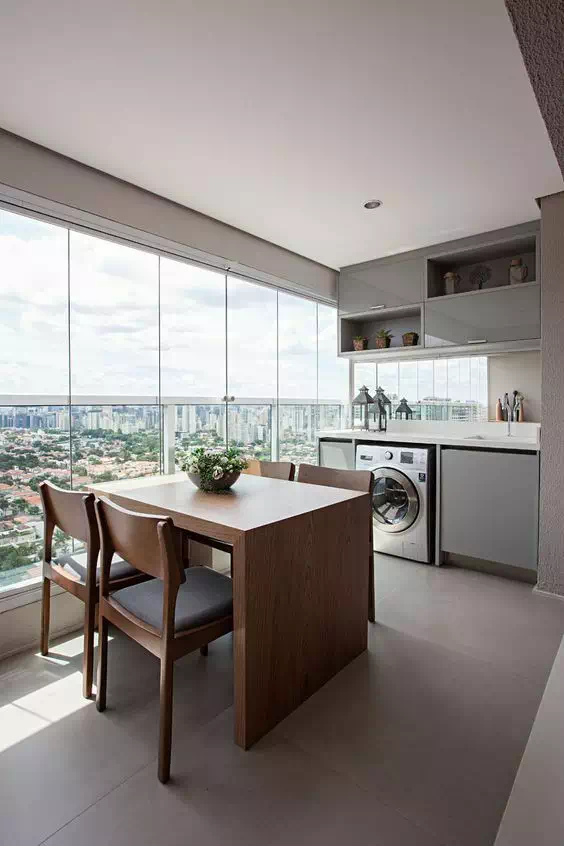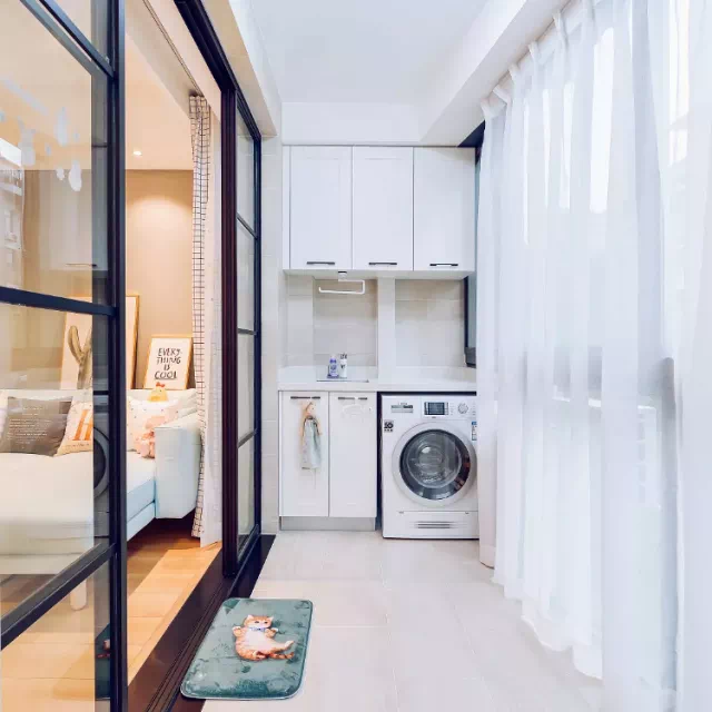这个是很关键的点,像现在寸土寸金的时代,阳台不再局限是个晾衣台或者堆放杂物的场所,封起来的阳台有了更多可能性,我们可以将它设计成书房、餐厅、休闲角落、洗衣房、茶室等功能空间。