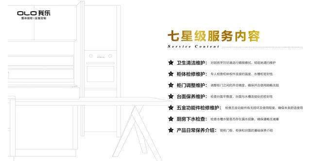 于是,我乐橱柜以家庭需求为出发点,应势而变,构建了标准化服务体系,全面升级七星级“乐管家服务”,为消费者提供更好的服务,为消费者更方便快捷的生活助力。