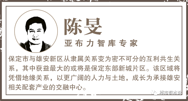 对此,亚布力智库专家陈旻表示,保定市与雄安新区从隶属关系变为密不可分的互利共生关系,其中获益较大的或将是保定东部新城片区。该区域将凭借地缘关系,以更广阔的人力与土地,成长为承接雄安相关配套产业的交融中心。
