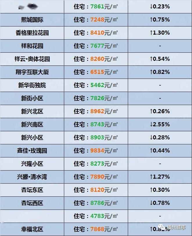 滕州各小区4月份较新房价出炉,均价小幅上涨!