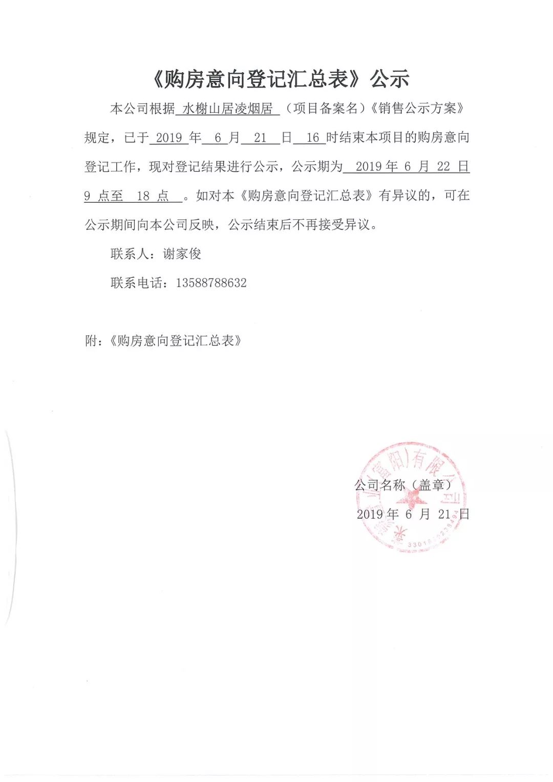 重要通知丨水榭山居凌烟居四期高层34、43号楼购房意向公示