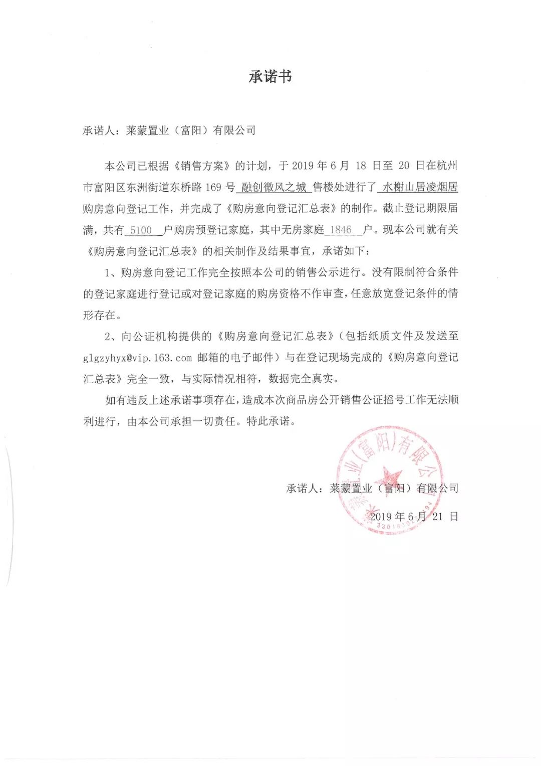 1、本项目推广名为“融创·微风之城”,地名办核准名为“水榭山居”,开发商:莱蒙置业(富阳)有限公司。预售许可证号:富售许字(2019)第053号。本宣传资料中提到的商品房面积为商品房建筑面积。