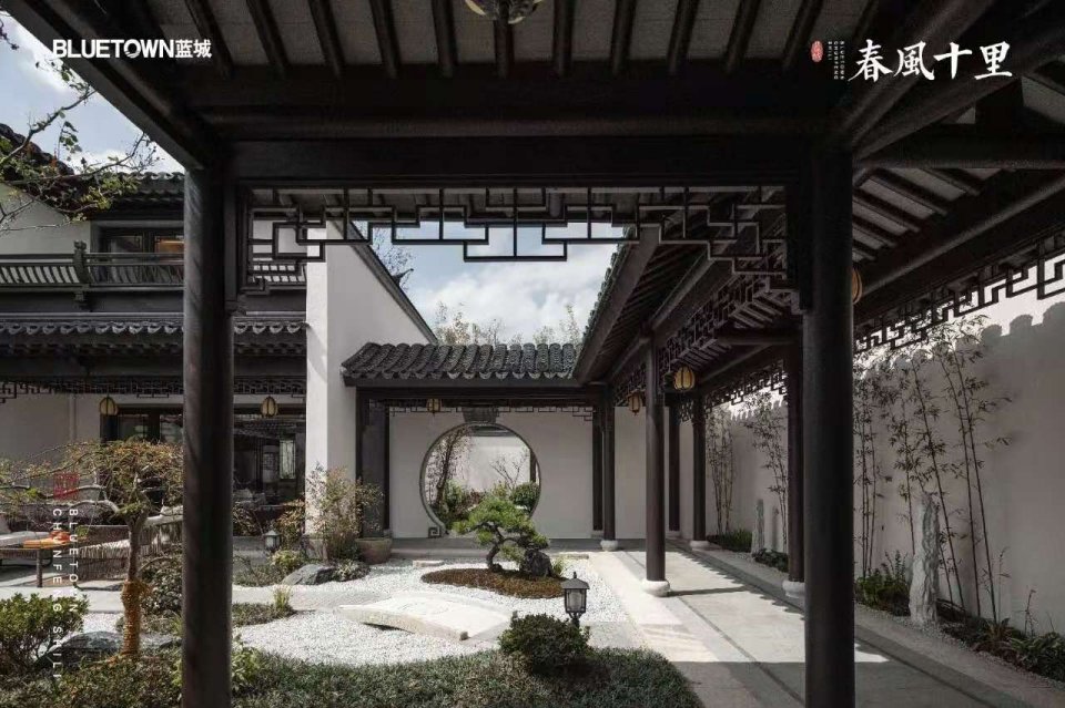 安吉蓝城春风十里是蓝城集团择址安吉县城西南生态谧境,打造的健康生活小镇,地块容积率仅0.44,绿地率37.2%,营造总建筑面积约13万方山水低密住区,规划中式合院及花园洋房两类产品。其中,一期中式合院面积约95-180方,主力户型95-135方,庭院面积60-280平米不等,均为精装修交付。