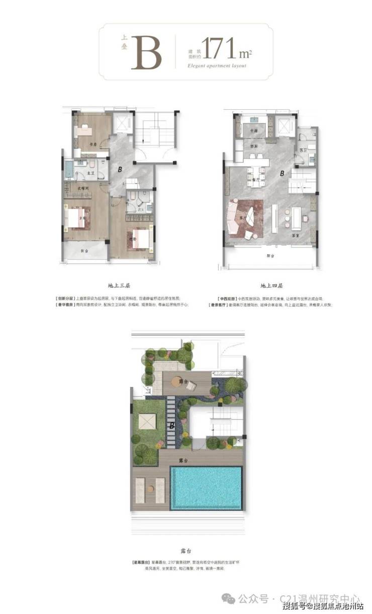 项目面向高端改善客群,本期在售合院建筑面积为 221-301㎡ ,公开预销售毛坯均价30186元/㎡(未含优惠);在售叠墅建筑面积为140-211㎡,毛坯均价22211元/㎡(未含优惠) 。