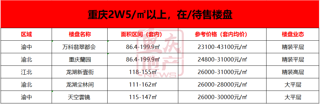 25000元/㎡+的单价,在重庆已经可以说是豪宅了。