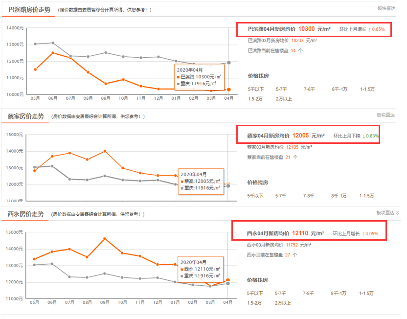 看北区,中央公园的新盘就没有均价20000元/㎡以下的,礼嘉、悦来价格更是普通购房者没有能力承受的区板块。