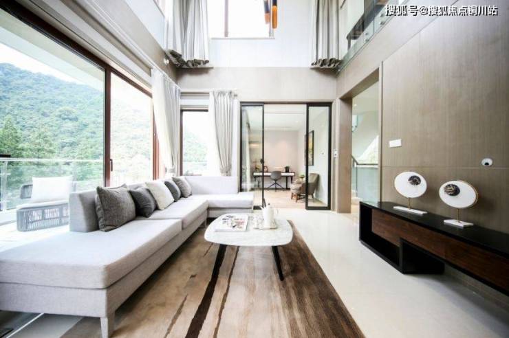 清澈溪流从山上垂垂地流下来,流泉飞瀑,淙淙的水流声不绝于耳。山地别墅伫立在山谷里,与苍翠森林融为一体,高山流水之境,入梦而来。