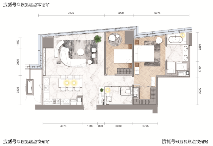 185㎡户型,以摩登风格为基调,在配色上运用大量的黑白灰关系做层次递进,塑造承载当代都市生活的自由空间。