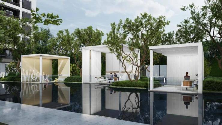 水景是园林中的动态因子,有了它园林便有了灵动美。时代·东宸上品在园林中庭,规划大面积水系景观,从而成就一方晨起锻炼、饭后休闲、傍晚漫步的绝妙去处,也让潺潺流水,成为生活的自然乐章。面对愈发喧嚣的都市生活,东宸上品给出的解决方案是,在园林内部打造颇具侘寂之美的枯山水景观,让居者的心灵都能在此休憩放松。此外,在园林内部,项目也规划有专属休闲场地,林荫下,清风拂过,这里便是自然的会客之所。