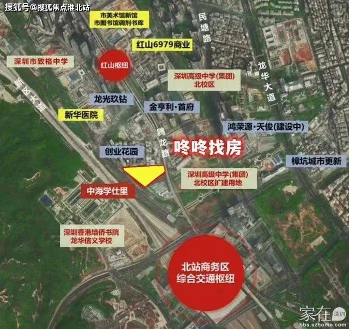 中海学仕里地处龙华红山片区,南侧是深圳北站,北侧则是红山居住区,毗邻金亨利、汇龙湾、莱蒙水榭春天等一大批我们耳熟能详的龙华明星楼盘。