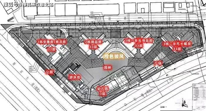 从建筑分布图上看,4栋住宅楼一字排开,其中1栋是安居房+商品房,3栋二单元是长租房,分别位于靠近新区大道和天铁的两端,也是噪音较大的两栋,中间的2栋、3栋一单元居住起来相对更舒适一些。