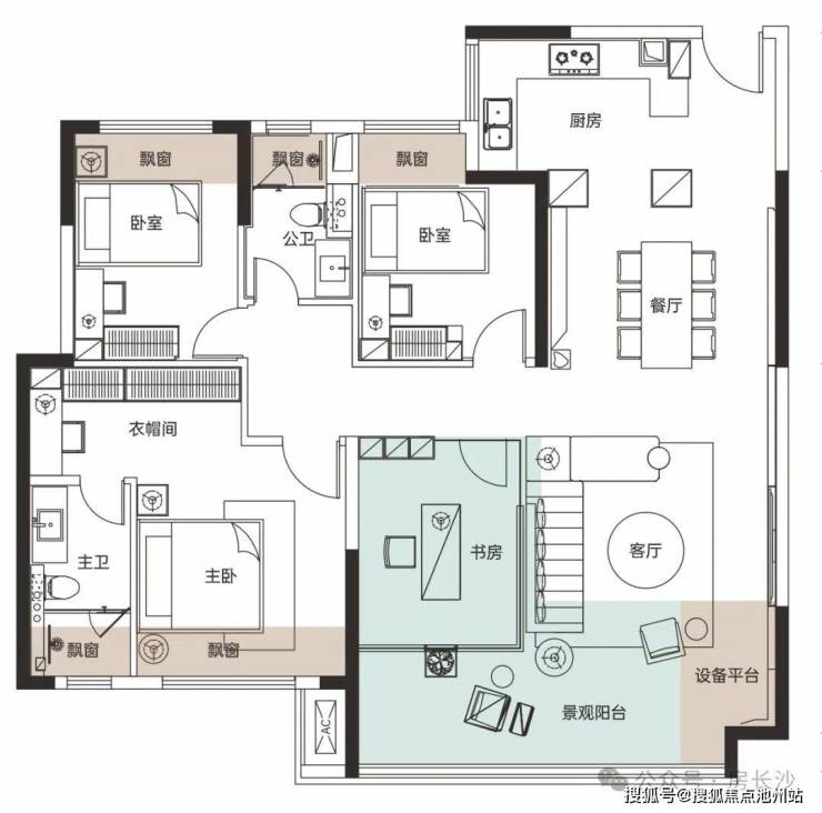 建面约139㎡四房两厅两卫: