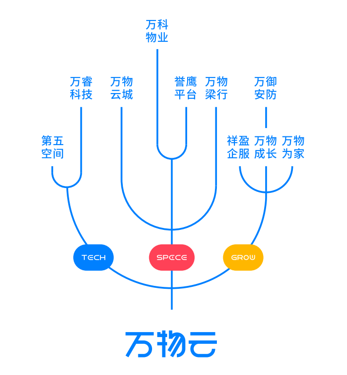 目前,万物云已形成万物梁行、万物云城、万睿科技、万御安防、万物为家、祥盈企服等品牌矩阵,以研发和运用科技化手段为先导,助力空间管理效率的提升和服务品质的升级。