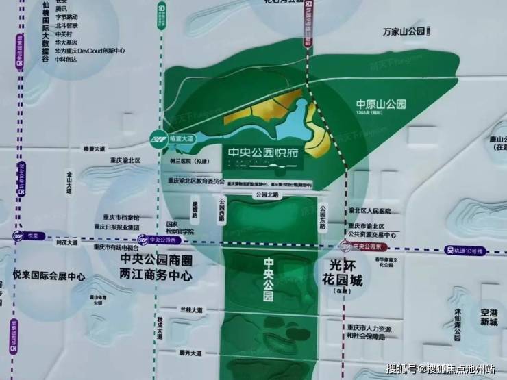 重庆主城被4座山脉分割形成3大槽谷,发源于华蓥山脉的龙王洞山脉,尚处在发育期,本应继续向南延伸,但神奇的是大地戛然而止,为重庆主城提供了一处绝佳的发展空间,这便是中央公园,而华润中央公园悦府安静的依偎在龙王洞山脉南侧。