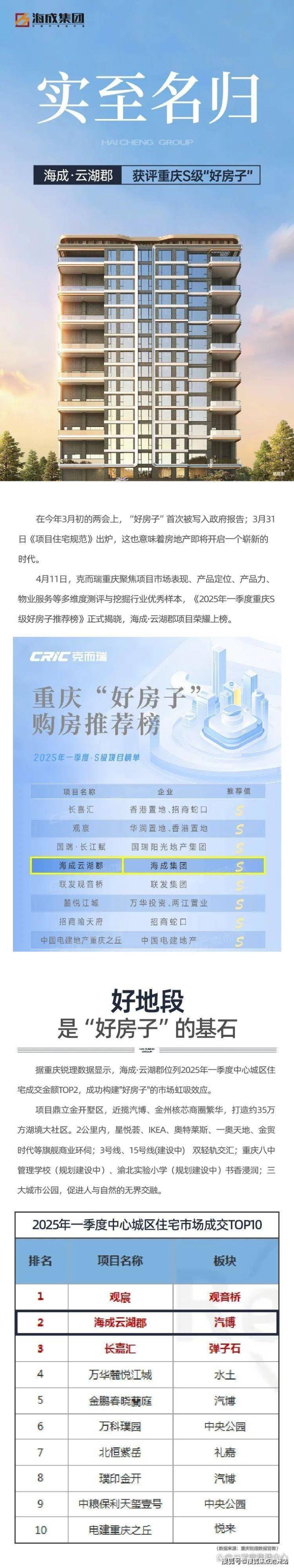 实至名归 | 海成·云湖郡获评重庆S级“好房子”