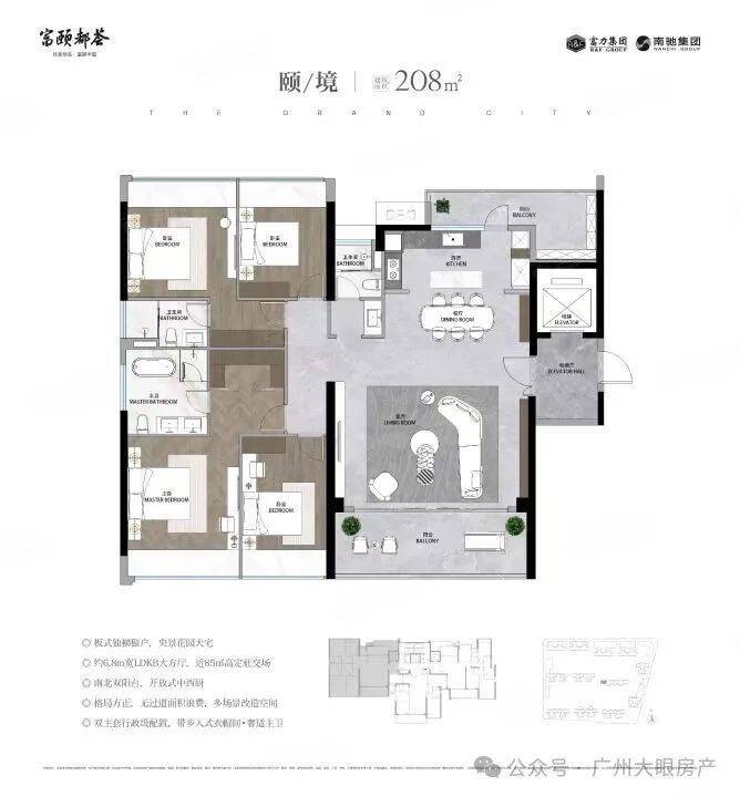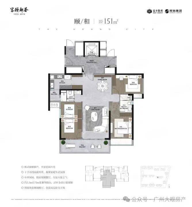 三梯三户38层高,户户朝南,前后瞰中心园林,左手9年制广大附学府,右手35万方大型商业综合体;南北超阔楼间距,无论是景观视野、采光通风还是日照环境,均为R区最强站位。
