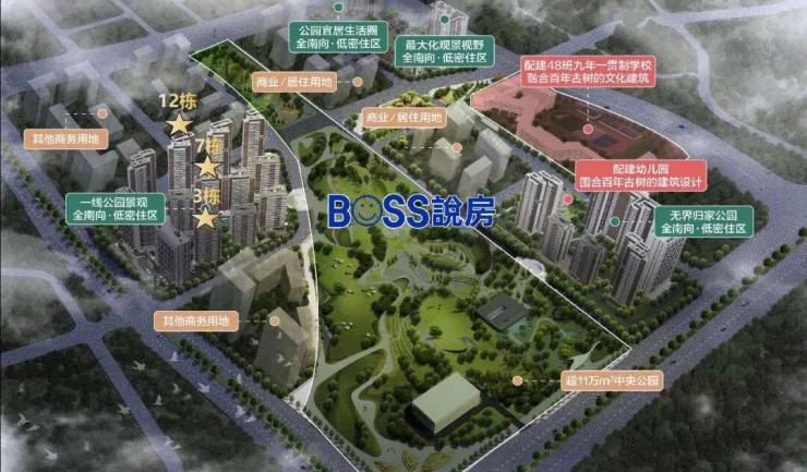 学校就在公园旁,首期地块穿越公园(约300米)即达,享目送式教育