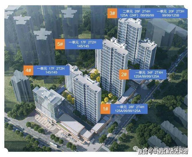 该项目包含5栋16-28层的住宅及两栋商业。