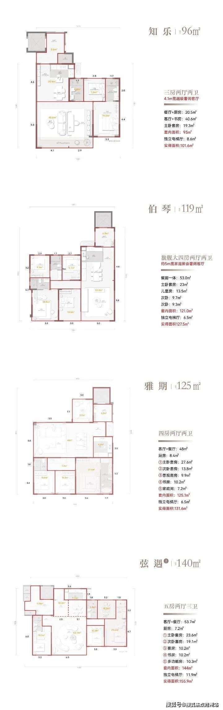 户型设计上,项目主打96-140㎡低密奢宅,同时涵盖180㎡五房,新增了125㎡全景舱户型,进一步丰富刚改人群的选择。更惊喜的是,项目户户享独梯独户独厅,承重墙极简设计、层高不低于3米,得房率超100%,远超片区同类项目,甚至堪比部分洋房产品,极大提升了空间利用率。