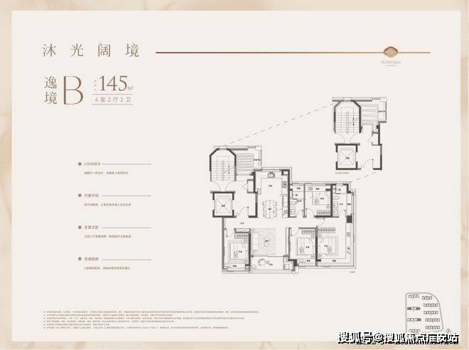 户型特点:4开间朝南,LDK一体化设计,南北通透。客厅面宽达4.3米,外接4.8米长阳台,采光通风俱佳。主卧带270°转角飘窗,主卫也有飘窗赠送。全屋飘窗设计,独立电梯厅,私密性与尊享感强。