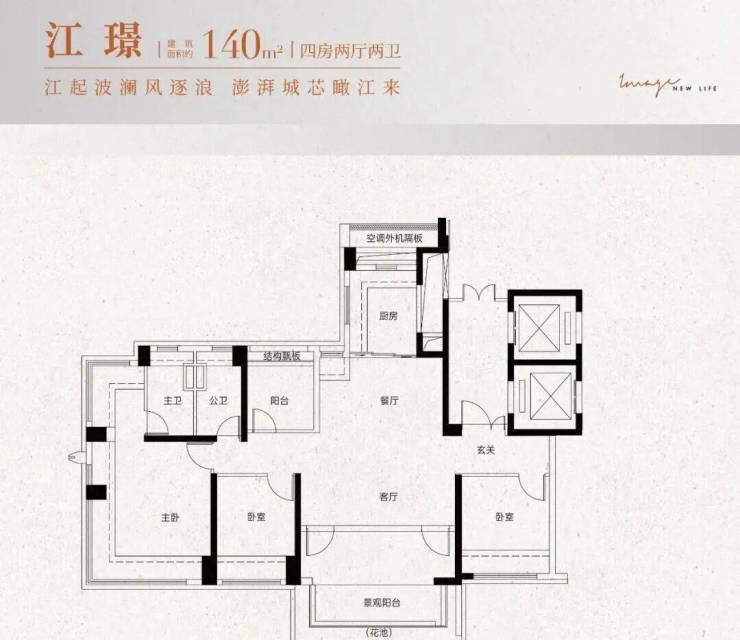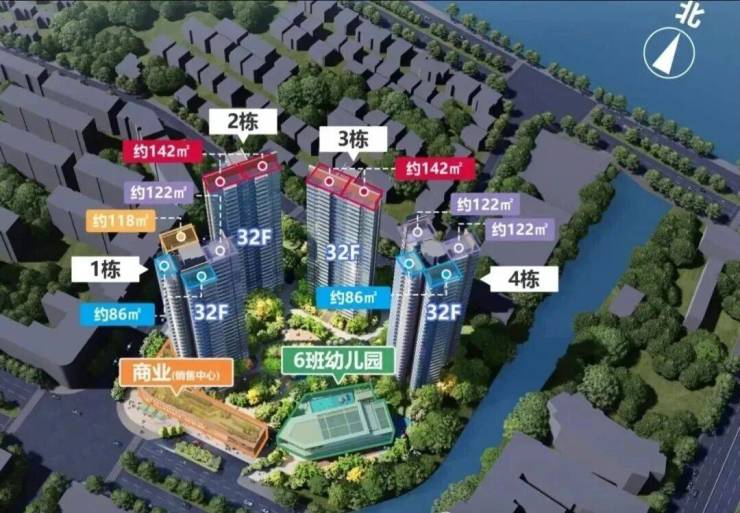③建面约140㎡:大四房两厅两卫,北向一线望江,稀缺板楼设计,专梯专户,尊享高贵