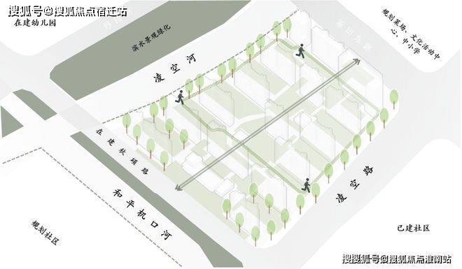 浦发上品社区西侧、南侧均有河道环绕,河道与社区之间是以观光游憩、生态休闲、特色四季于一体,满足休闲逸趣、互动活动,情感交流等使用功能的滨水景观绿化。