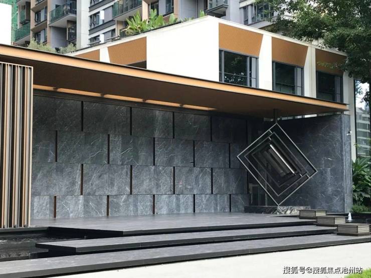 离家还有80米的时候,先映入眼帘的,是玻璃幕墙辅以暖木色系线条、香槟金铝板配搭而来的建筑群;
