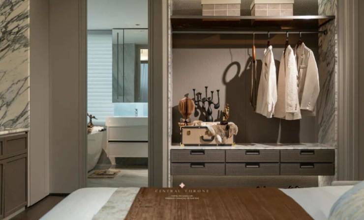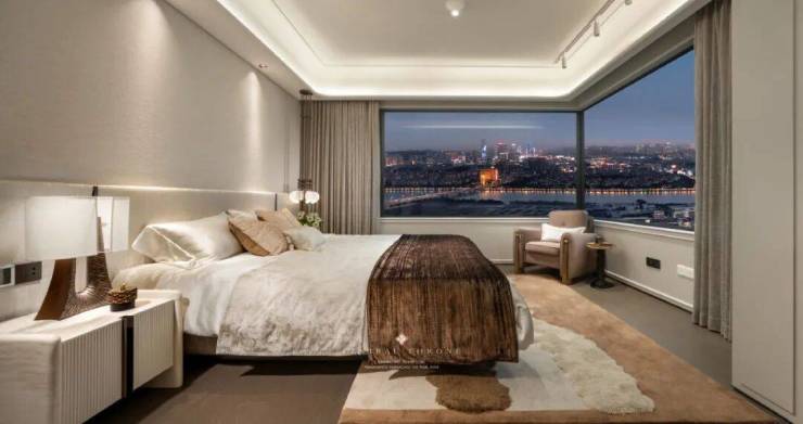 创新双主卧套房设计,是对多代同堂家庭的精准考量。南向尊亲套房配备独立卫浴与阔景飘窗,长辈既能拥有专属的私密空间,又能随时推开窗户,与园林的绿意清风相伴,安享晚年的从容。约31㎡的主人尊邸更是奢华的极致表达,270°环幕飘窗将江景与城景化作私人画框,晨起倚窗看江,夜读伴星眠,每一刻都与风景共生。独立的步入式衣帽间足以容纳四季华服,让名仕风范有处安放。