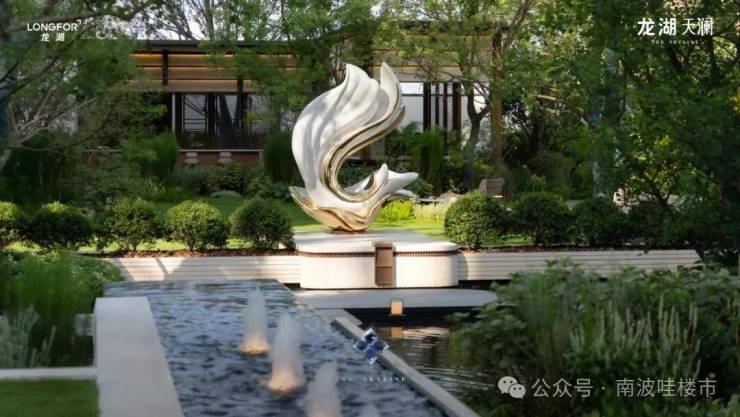 “微波”主题的迎宾花园里,光面石材与金属材质碰撞出精致质感;“涟漪”主题的树王水院,水上汀步伴绿植环绕,隔绝喧嚣只剩自然呼吸。
